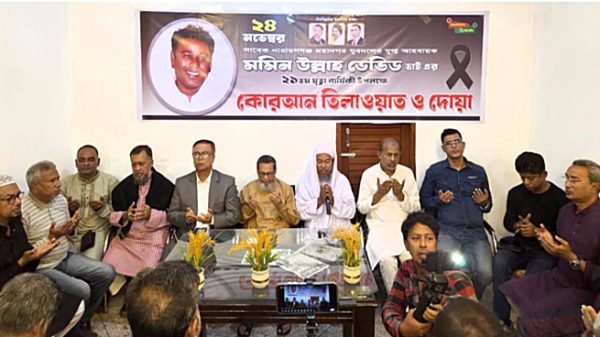 নারায়ণগঞ্জ প্রতিনিধিঃ শহরের চাষাড়ায় অপূর্ব (২৫) নামের একজন রেস্তোরাঁ কর্মী খুন হয়েছে। দুর্বৃত্তরা গত রোববার (৯ মার্চ) রাত সাড়ে ১০টায় শহরের চাষাঢ়া বালুরমাঠ এলাকায় ছুরিকাঘাত করে। ছুরিকাঘাতে আহত অবস্থায় শহরের ৩০০ শয্যা বিশিষ্ট হাসপাতালে নেওয়ার পথেই মারা যান যুবক । তবে পুলিশের দাবী নিহত অপূর্ব কে কেউ কেউ ছাত্রদল কর্মী বলে দাবী করলেও আসলে সে ছাত্রদল কর্মী না। সে একটি রেস্তোরায় কাজ করে। তর্ক বিতর্কের জের ধরে তাকে ছুরিকাঘাত করা হয়েছে। নারায়ণগঞ্জ অতিরিক্ত পুলিশ সুপার (অপরাধ ও অপারেশন) তারেক আল মেহেদী বলেন, নিহত ব্যক্তি ছাত্রদলের কেউ না। সে এক রেস্তোরায় কাজ করতো। মূলত তার সঙ্গে এক গার্মেন্টকর্মীর কথা কাটাকাটির এক পর্যায়ে এ ঘটনা ঘটে। এ ঘটনায় একজন আটক রয়েছে।
