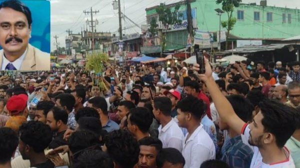 সাজ্জাদ আহমেদ মাসুদ, গলাচিপা (পটুয়াখালী) প্রতিনিধিঃ- পটুয়াখালীর গলাচিপা উপজেলার পানপট্টি মাধ্যমিক বিদ্যালয়ে একুশে ফেব্রুয়ারির প্রভাতফেরিতে ‘জয় বাংলা, জয় বঙ্গবন্ধু’ লেখা সংবলিত ব্যানার ব্যবহারের ঘটনা ঘটেছে। এতে স্থানীয় বিএনপি নেতাকর্মী ও জনসাধারণ ক্ষোভ প্রকাশ করে বিক্ষোভ মিছিল করেছে। ঘটনাটি ঘটেছে শুক্রবার সকালে পানপট্টি মাধ্যমিক বিদ্যালয় প্রাঙ্গনে। এ ঘটনায় স্থানীয় বিএনপিসহ সাধারণ মানুষ ক্ষোভ প্রকাশ করেছে। এদিকে শুক্রবার (২১ ফেব্রুয়ারি) সকাল ১০টার দিকে বিএনপি ও স্থানীয়রা বিক্ষোভ করে বিদ্যালয়ের প্রধান শিক্ষক নিহার রঞ্জন রায় এর অপসারণের দাবি করেন। এর আগে, সকাল ৮টায় আয়োজিত প্রভাতফেরিতে শিক্ষার্থী ও স্থানীয়রা অংশ নেন। র্যালির সামনের সারিতে শিক্ষার্থীদের হাতে ওই ব্যানার দেখা যায়। যেখানে প্রধান শিক্ষক নিহার রঞ্জনের উপস্থিতিতে শিক্ষক, শিক্ষার্থী ও স্থানীয় ব্যক্তিরা অংশ নেন। পরে ব্যানারটি শহিদ মিনারের পাশে টানিয়ে রাখা হয়।